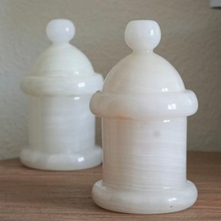 Set portacandele e portacandele in pietra travertino Beige Vintage medio con coperchio