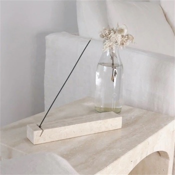 Piatto di incenso in pietra di marmo travertino Beige rettangolare minimale e supporto per adesivi superficie levigata