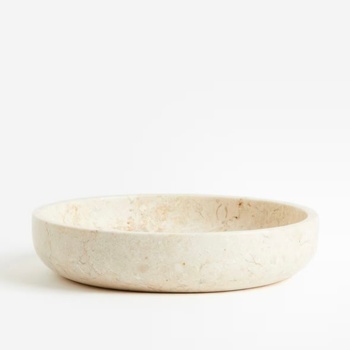 Tondino di marmo bianco lilla che serve cesto di frutta e piatto Catchall