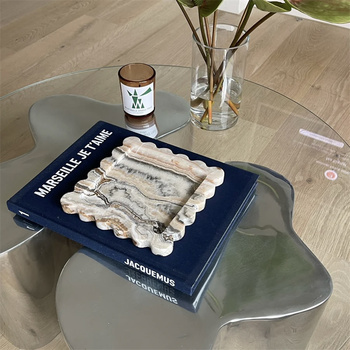 Grande vassoio ovale in travertino Vintage Beige e scatola di servizio